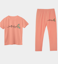 This playful girls' set features a vibrant pink t-shirt adorned with charming butterfly prints, paired with comfortable matching trousers. Perfect for active days, the soft fabric ensures ease of movement while adding a fun, colorful touch to her wardrobe. Ideal for playdates or casual outings, this butterfly-themed outfit brings joy and style together effortlessly.